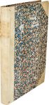 Legatura coeva in mezza pergamena rigida con punte abrasa ai piatti, titoli al dorso su tassello e tagli marmorizzati.