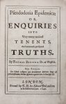 BROWNE THOMAS, Pseudodoxia epidemica : or enquiries into very many received tenents and commonly presumed truths. London : printed by T.H. for Edward Dod, 1646.