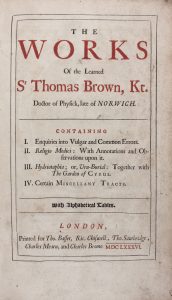 BROWNE THOMAS, The works [...] containing I. Enquiries into Vulgar and Common Errors. II. Religio Medici : With Annotations and Observations upon it. III. Hydriotaphia : or, Urn-Burial : together with the Garden of Cyrus. IV. Certain Miscellaneous...