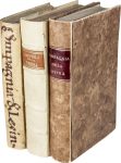 Due parti in un volume in-8° (mm 145x95). Carte [8], 109, [3] : 82. Esemplare sprovvisto delle ultime carte bianche. Lavoro di tarlo con perdita di testo al frontespizio e alle prime carte. Gore d'acqua e brunitura più evidente alla seconda parte. Legatura in piena pergamena con titoli manoscritti al dorso. Lavoro di tarlo al piatto anteriore.