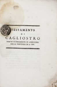 CAGLIOSTRO ALESSANDRO (Conte di) [pseud. di Balsamo Giuseppe], Testamento di Cagliostro morto ultimamente di apoplessia nella fortezza di S. Leo. S.n.t. [1795?]