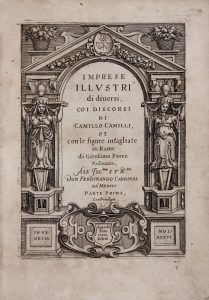 CAMILLI CAMILLO, Imprese illustri di diversi, coi discorsi [...], et con le figure intagliate in rame di Girolamo Porro [...]. Parte Prima (-Terza). In Venetia : Appresso Francesco Ziletti, 1586.