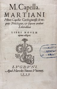 CAPELLA MARTIANUS MINEUS FELIX, De nuptijs philologiae & septem artibus liberalibus… Lugduni : apud haeredes Simonis Vincentii, 1539.
