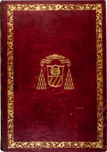 Legatura coeva in marocchino rosso alle armi cardinalizie, con stemma di Mons.