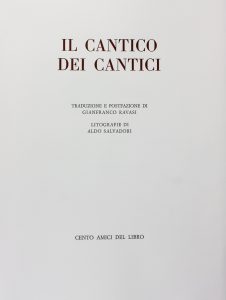 RAVASI GIANFRANCO, Il Cantico dei Cantici. [Milano] : Cento Amici del Libro, [1996] (Reggio Emilia : Fratelli Manfredi, 1996).