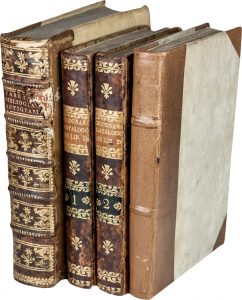 Una piccola lacuna al margine bianco del frontespizio del primo volume ma buona copia. Legatura coeva in mezza pelle.