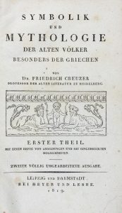 CREUZER FRIEDRICH, Symbolik und Mythologie der alten Volker, besonders der Griechen [...]. Erster theil (-sechster). Leipzig und Darmstadt : bei Heier und Leske (poi Carl Wilhelm Leske), 1819-23.
