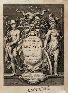 De MARSELAER FREDERIK, Equitis legatus. Libri duo. Ad Philippum 4. Hispaniarum regem. Antuerpiae : ex officina Plantiniana, 1626.
