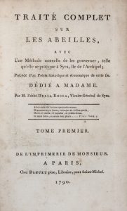 Della ROCCA CARLO, Traitè complet sur les abeilles [...] Tome premier [-troiseime]. A Paris : de l'imprimerie de Monsieur, chez Bleuet père, 1790.