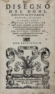 DONI ANTON FRANCESCO, Disegno [...], partito in più ragionamenti, ne quali si tratta della scoltura et pittura : de colori, de getti, de modegli... In Venetia : Appresso Gabriel Giolito de Ferrarii, 1549.