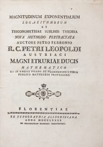 FERRONI PIETRO, Magnitudinum exponentialium logarithmorum et trigonometriae... Firenze : ex Typographia Allegriniana, 1782.