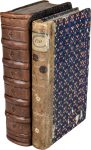Legatura ottocentesca in mezza pelle con piatti rivestiti in carta decorata e titoli impressi in oro al dorso. (2)