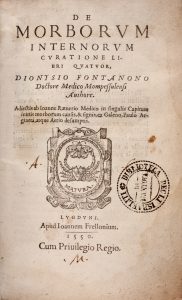 FONTANON DENYS, De morborum internorum curatione libri quatuor... Lugduni : apud Ioannem Frellonium, 1550.