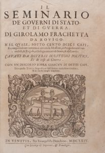 FRACHETTA GIROLAMO, Il seminario de' gouerni di stato, et di guerra. In Venetia : per Euangelista Deuchino, 1624.