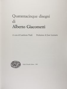 GIACOMETTI ALBERTO, Quarantacinque disegni di Alberto Giacometti. Torino : Einaudi, 1963.