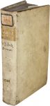 Legatura in piena pergamena rigida con macchie ai piatti e piccoli forellini di tarlo lungo le cerniere e il dorso.