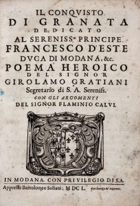 GRAZIANI GIROLAMO, Il conquisto di Granata dedicato al serenissimo principe... In Modana : appresso Bartolomeo Soliani, 1650.