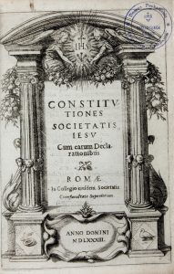 IGNACIO de LOYOLA, Constitutiones societatis Iesu cum earum Declarationibus. Romae : In Collegio eiusdem Societatis, 1583.