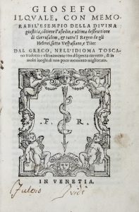 IOSEPHUS FLAVIUS, Giosefo, il quale, con memorabil'esempio della divina giustitia, contiene l'assedio e l'ultima distruttione di Gierusalem... (Al colophon : ) In Vinegia : per Francesco Rampazetto, 1555.