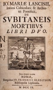 LANCISI GIOVANNI MARIA, De subitaneis mortibus libri duo. Romae : Jo. Friderici Gleditsch, 1709.