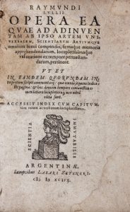 LULL RAMON, Opera ea quae ad adinventam ab ipso artem universalem, scientiarum artiumque omnium brevi compendio [...] pertinent. Argentinae : Sumptibus Lazari Zetzneri, 1598.