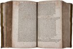 Legatura coeva in pergamena floscia con dorso colorato, risvolti e lacerti di legacci : un po' lisa.