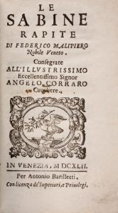 MALIPIERO FEDERICO, Le sabine rapite... In Venezia : per Antonio Bariletti, 1642.