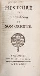 MARSOLLIER JACQUES, Histoire de l'Inquisition et son origine. A Cologne : chez Pierre Marteau, 1693.
