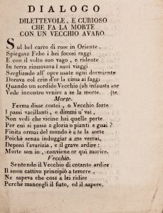 MENCHI DI CIREGLIO, Dialogo dilettevole, e curioso che fa la morte con un vecchio avaro. S.n.t. (ma inizi del XIX secolo).
