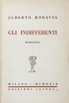 MORAVIA ALBERTO, Gli Indifferenti. Romanzo. Milano : Edizioni Alpes, 1929.