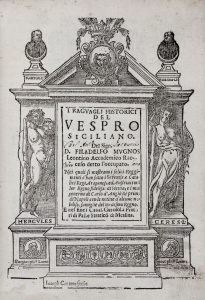 •Id., I raguagli historici del Vespro Siciliano. In Palermo : per Domenico d'Anselmo, 1669. Pagine [16], 367, [1].