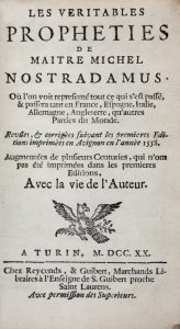 NOSTRADAMUS, Les veritables propheties [...] ou l'on voit represente tout ce qui s'est passe. A Turin : chez Reycends, & Guibert, 1720.