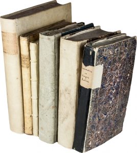 Legatura coeva in pergamena coeva con titoli impressi in oro al dorso.
