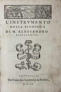 PICCOLOMINI ALESSANDRO, L'Instrumento della filosofia. In Venetia : Per Francesco Lorenzini da Turino, 1560.