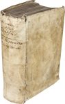 2 parti, mancanti dei frontespizi. Legatura coeva in pergamena floscia con risvolti e lacerti di legacci.