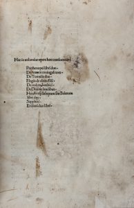 PONTANO GIOVANNI GIOVIANO, Hoc in volumine opera haec continentur. Parthenopei libri duo. De amore coniugali tres. De tumulis duo. Elegia de obitu filii... (Al colophon : ) Impressum Neapoli : per Sigismundum Mayr Alemanum, 1505.