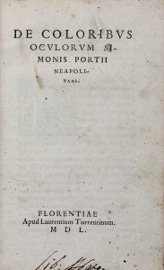 PORZIO SIMONE, De coloribus oculorum... Florentiae : Apud Laurentium Torrentinum, 1550.