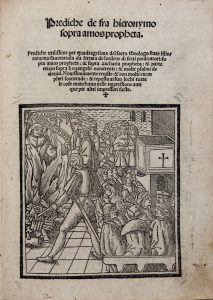 SAVONAROLA GIROLAMO, Prediche [...] sopra Amos propheta. (Al colophon : ) In Venetia : per Cesaro Arrivabeno Venetiano, 1528.