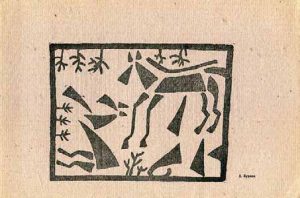 [Frères Bourliouk - Kasimir Malevitch]. Khlebnikov, Vélimir. Riav [Le Beuglement]. St. Pétersbourg, 1914. Restaurations. Premier livre de poésies de Khlébnikov. Très rare.