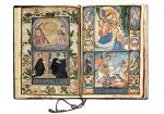 Richement ornée en tête de trois peintures à pleine page (la famille Cano de Vera adorant la Trinité, saint Jacques pourfendeur des maures sous l’Annonciation, les armes des Cano de Vera) protégées par 3 serpentes d’épaisse soie rouge, d’une lettre historiée (portrait du roi Philippe II (70 x 65 mm) à l’avant-dernier feuillet) et de 18 lettres ornées carrées or, rouge, bleu, argent (dimensions approximatives : 70 mm de côté), cette carta executoria relève de la catégorie la plus luxueuse du genre.