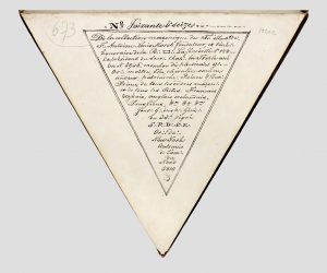 TEXTE MYTHIQUE DES SCIENCES OCCULTES, CE MANUSCRIT DE FORME TRIANGULAIRE, ENTIÈREMENT CHIFFRÉ, DONNERAIT LA CLEF DES POUVOIRS SECRETS DU COMTE DE SAINT-GERMAIN (1691?-1784).