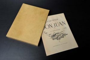 T'SERSTEVENS, Albert. - La légende Don Juan. Lithographies de G. de Sainte-Croix.- Paris, Les éditions de la nouvelle France, 1944.- Grand in-4 de 168 pp., illus. in-texte; broché, couv. illus. rempl., non rogné, sous emboitage de...