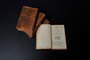 Lot de livres XVIIIIeme reliure en basane à détailler, dont le livre de Grégoire Legrand 1670/ Abrege des matières beneficiales lyon 1687/De la connoissances de Jésus Christ en 2 volumes de 1760/ Lettres de Monsieur Flechier 1711