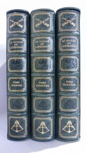 LAPEROUSE. Le voyage extraordinaire de Lapérouse. Illustré par Da Ros. Nice, éditions Le chant des Sphères, 1971. 3 vol in-8 reliure d'éditeur cuir sous étui, premier plat décor en relief et doré de gouvernail, tête dorée. Tirage limité...