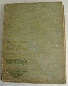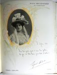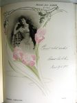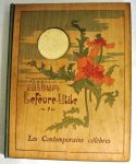 ALBUM LEFÈVRE-UTILE. Les Contemporains célèbres. Paris, Octave Beauchamp, G. de Malherbe, 1904. In-4, plats de bois illustrés en couleurs, le médaillon de Sarah Bernhard par Mucha dans l'ajour du plat supérieur manquant , dos toile imprimé,...