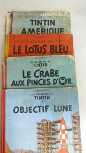Tintin en Amérique / le lotus bleu /Objectif lune / Le crabe au pince d'or ENSEMBLE de 4 bandes dessinnées de Herge edition ancienne à restaurée