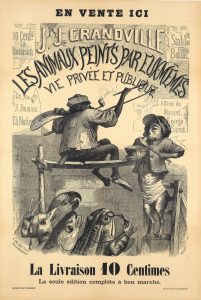 GRANDVILLE (J.-J.) - AFFICHE DE LIBRAIRIE pour Les Animaux peints par eux-mêmes, imprimée par Chaix et Cie, vers 1856.