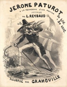 GRANDVILLE (J.-J.) - AFFICHE DE LIBRAIRIE pour Jérôme Paturot à la recherche d'une position sociale de Louis Reybaud, parue chez Hetzel et Paulin en 1846, imprimée par Villain.