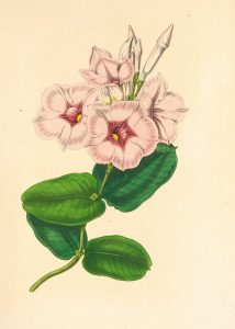 8 belles planches de fleurs coloriées, chacune pourvue d'une serpente portant la légende imprimée, et nombreuses vignettes gravées sur bois dans le texte ou à pleine page d'après Freeman, Marvy, Steinheil, Meissonnier, Gavarni, Daubigny et Catenacci.