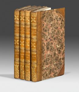 Un feuillet de garde et le faux-titre du tome II froissés. Manque de papier à la marge latérale des deux derniers feuillets du tome III.